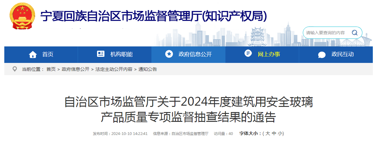 中國質(zhì)量新聞網(wǎng)訊 近日,寧夏回族自治區(qū)市場監(jiān)管廳公布2024年度建筑用安全玻璃產(chǎn)品質(zhì)量專項監(jiān)督抽查結(jié)果。
