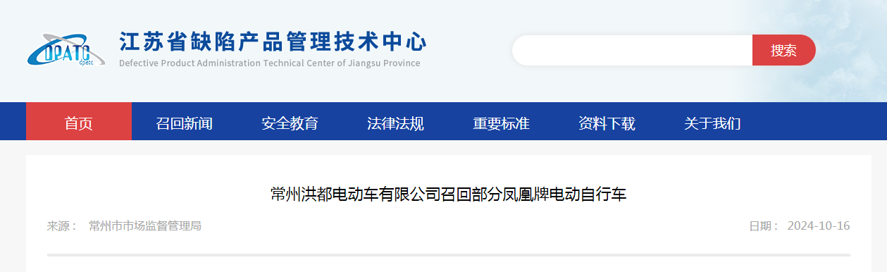 中國質量新聞網(wǎng)訊 據(jù)江蘇省缺陷產品管理技術中心網(wǎng)站消息,日前,常州洪都電動車有限公司按照《消費品召回管理暫行規(guī)定》的要求,主動向常州市市場監(jiān)督管理局報告了召回計劃,將自即日起,召回2023年2月2日制造的鳳凰牌TDT2121Z型電動自行車,涉及數(shù)量為30件。