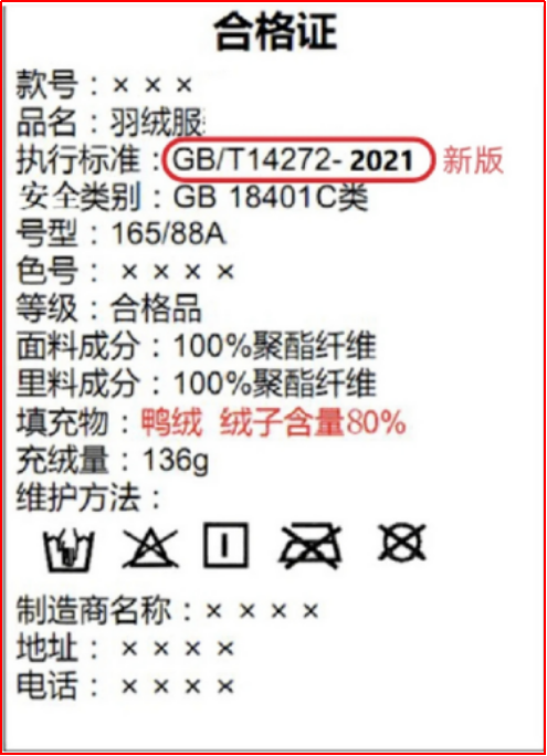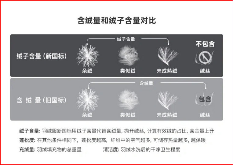 2022年4月1日,我國(guó)的羽絨服新國(guó)標(biāo)——GB/T14272-2021《羽絨服裝》,正式實(shí)施。新國(guó)標(biāo)代替了之前的舊國(guó)標(biāo)——GB/T14272-2011《羽絨服裝》。重要的是,新國(guó)標(biāo)在絨子含量等方面有了更高的要求,使得羽絨服的保暖程度等有了更好的保障。所以,大家在選購(gòu)時(shí),首選執(zhí)行標(biāo)準(zhǔn)是新國(guó)標(biāo)的產(chǎn)品。