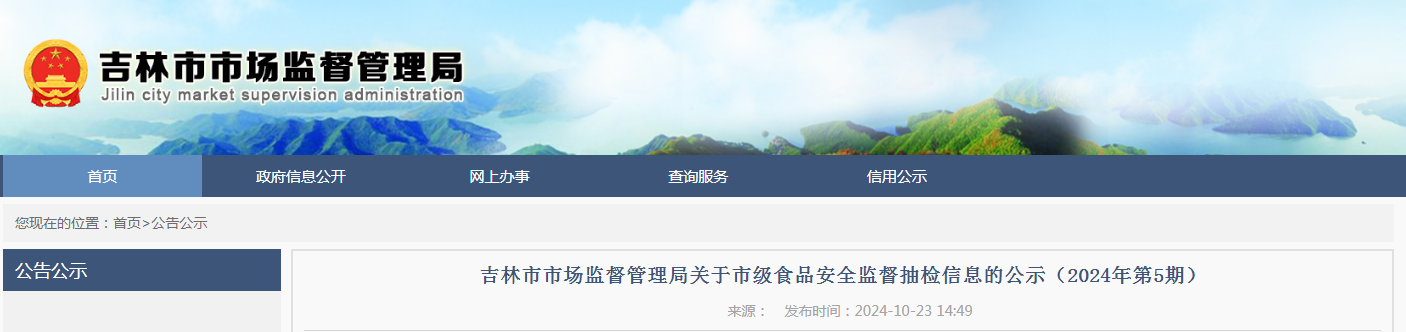吉林市市場(chǎng)監(jiān)督管理局關(guān)于市級(jí)食品安全監(jiān)督抽檢信息的公示(2024年第5期)