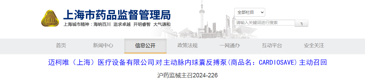 邁柯唯(上海)醫(yī)療設(shè)備有限公司對(duì)主動(dòng)脈內(nèi)球囊反搏泵(商品名:CARDIOSAVE)主動(dòng)召回