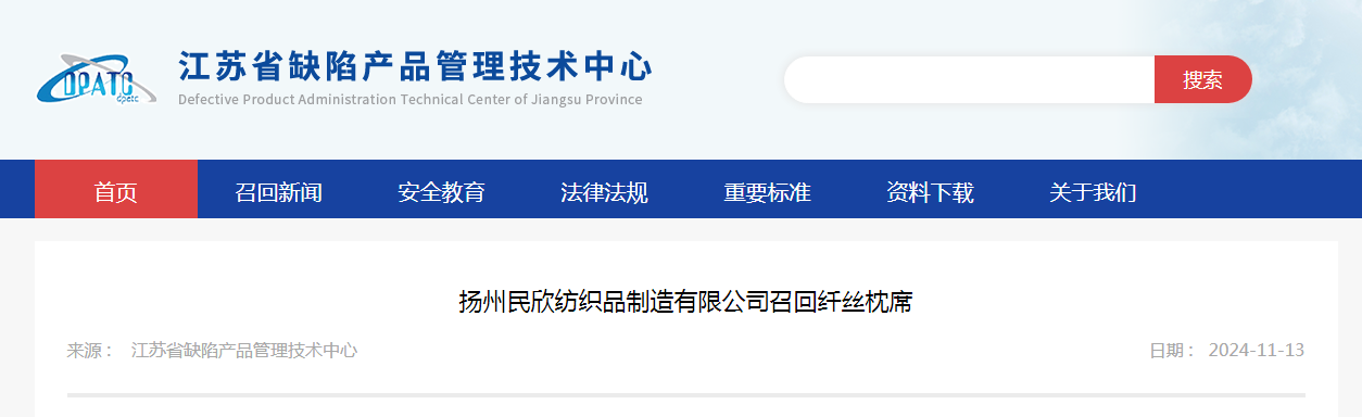 中國質(zhì)量新聞網(wǎng)訊 據(jù)江蘇省缺陷產(chǎn)品管理技術(shù)中心網(wǎng)站消息,日前,揚州民欣紡織品制造有限公司按照《消費品召回管理暫行規(guī)定》的要求,向揚州市市場監(jiān)督管理局報告了召回計劃,將自2024年11月15日起,召回2023年05月06日至2023年05月11日制造的蘇揚(圖形)牌45cm×60cm型纖絲枕席,涉及數(shù)量為298件。
