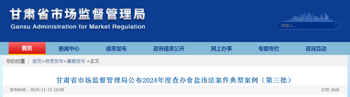 甘肅省市場(chǎng)監(jiān)督管理局公布2024年度查辦食鹽違法案件典型案例(第三批)