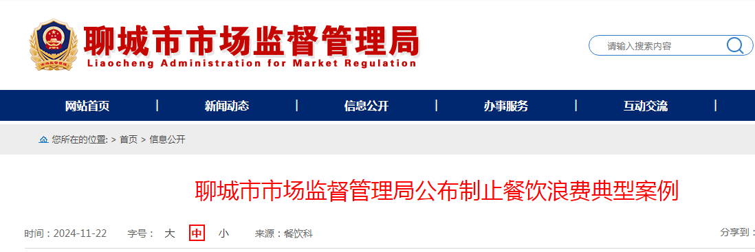 聊城市市場監(jiān)督管理局公布制止餐飲浪費典型案例