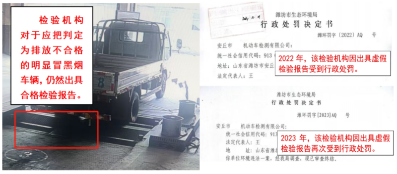 經(jīng)濰坊市生態(tài)環(huán)境局核實(shí),2022年9月該機(jī)構(gòu)曾因?qū)γ昂跓熫嚦鼍吆细駲z驗(yàn)報(bào)告,被濰坊市生態(tài)環(huán)境局安丘分局實(shí)施行政處罰。2023年5月,濰坊市生態(tài)環(huán)境局安丘分局在接到群眾舉報(bào)后進(jìn)行核查,發(fā)現(xiàn)該機(jī)構(gòu)仍在實(shí)施對(duì)冒黑煙車出具合格檢驗(yàn)報(bào)告的違法行為,故對(duì)該機(jī)構(gòu)再次作出行政處罰。