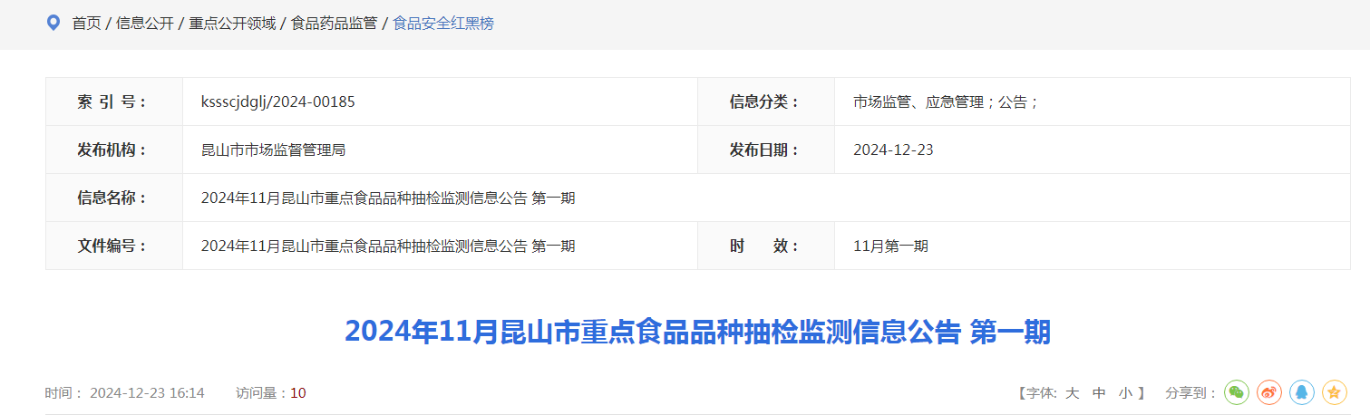| 2024年11月昆山市重點(diǎn)食品品種抽檢監(jiān)測合格信息表 第一期 | |||||||