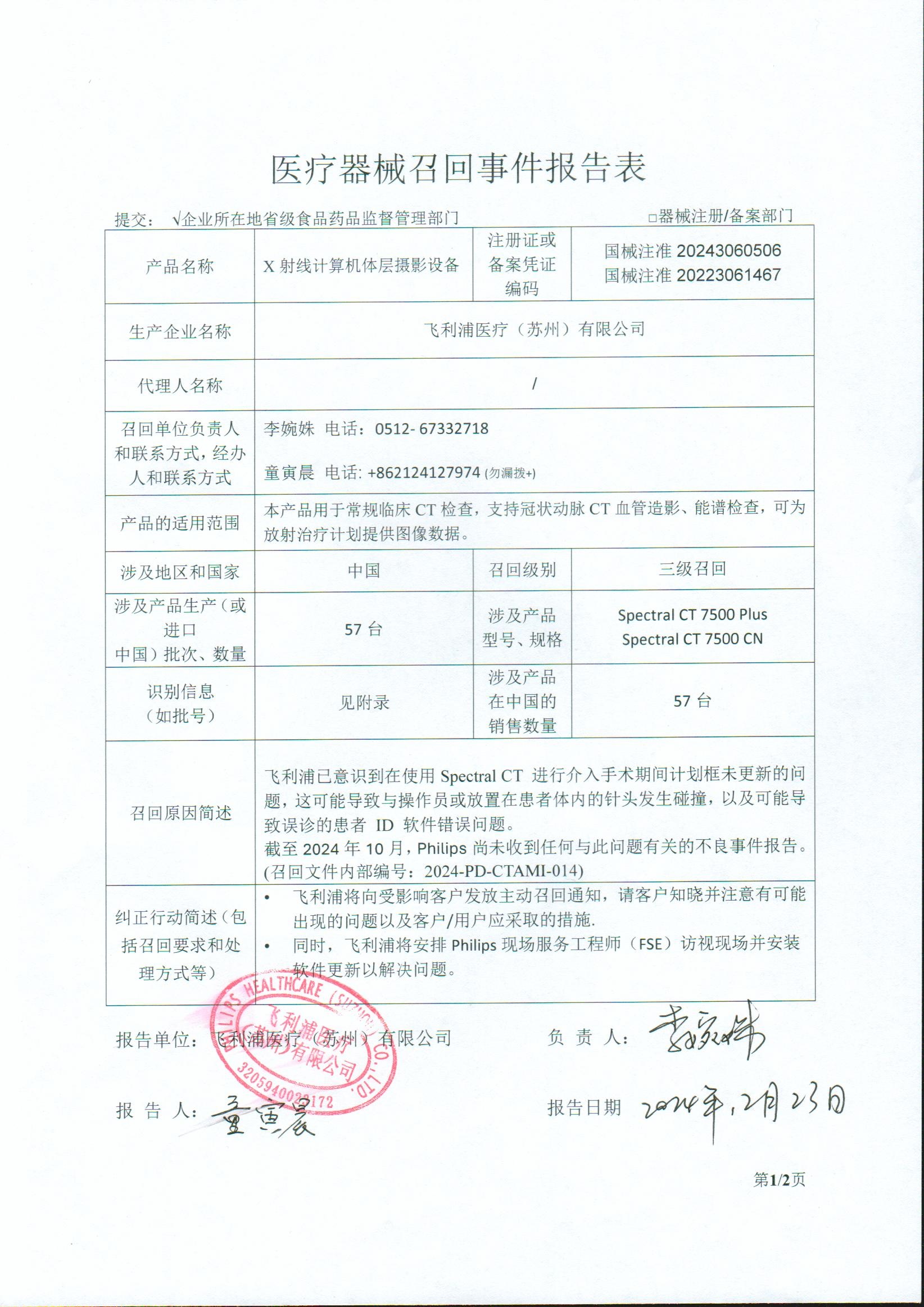 飛利浦(醫(yī)療)有限公司報告,在使用Spectral CT進(jìn)行介入手術(shù)期間有計劃框未更新的問題,可能導(dǎo)致與操作員或放置在患者體內(nèi)的針頭發(fā)生碰撞,可能導(dǎo)致出現(xiàn)軟件問題。飛利浦醫(yī)療(蘇州)有限公司對其生產(chǎn)的X射線計算機(jī)體層攝影設(shè)備主動召回。召回級別為三級。涉及產(chǎn)品的型號、規(guī)格及批次等詳細(xì)信息見《醫(yī)療器械召回事件報告表》