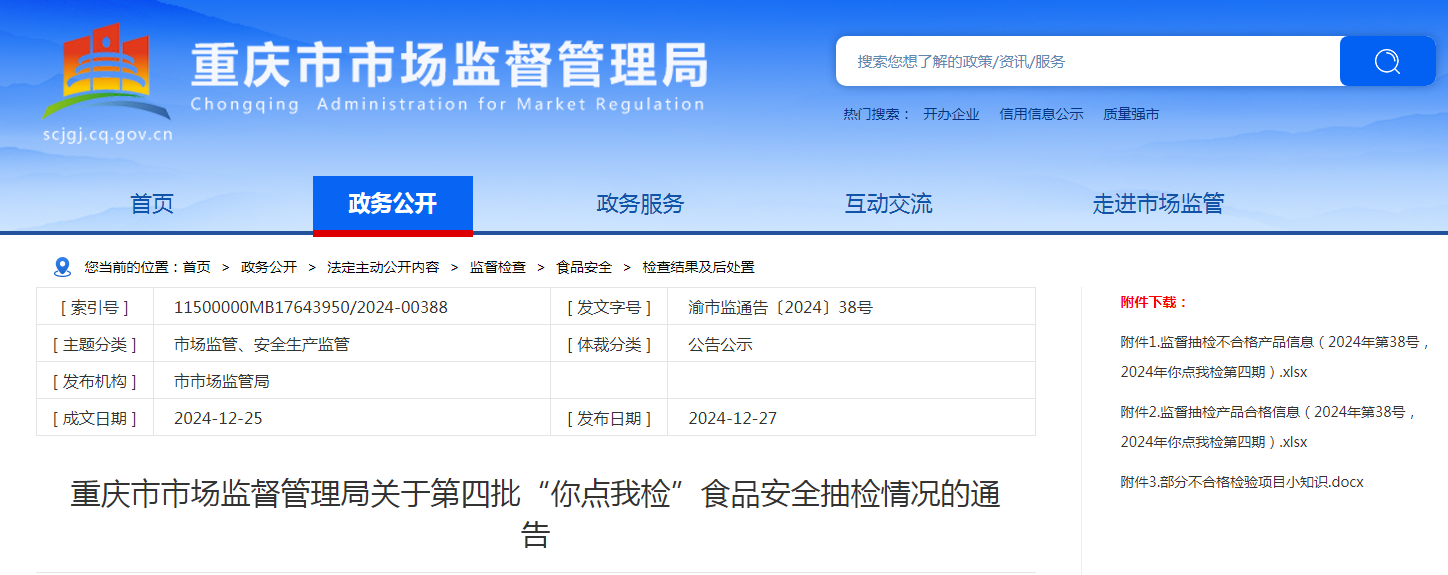 重慶市市場(chǎng)監(jiān)督管理局關(guān)于第四批“你點(diǎn)我檢”食品安全抽檢情況的通告