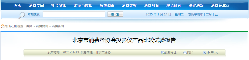 北京市消費(fèi)者協(xié)會(huì)投影儀產(chǎn)品比較試驗(yàn)報(bào)告