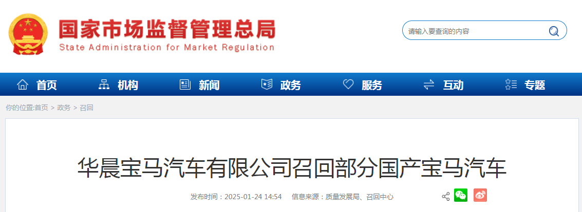 日前,華晨寶馬汽車(chē)有限公司根據(jù)《缺陷汽車(chē)產(chǎn)品召回管理?xiàng)l例》和《缺陷汽車(chē)產(chǎn)品召回管理?xiàng)l例實(shí)施辦法》的要求,向國(guó)家市場(chǎng)監(jiān)督管理總局備案了召回計(jì)劃。決定自即日起,召回以下車(chē)輛。