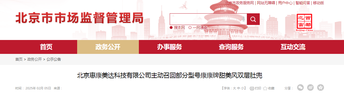 其他信息 | 相關(guān)用戶也可以登錄北京市市場監(jiān)督管理局網(wǎng)站(scjgj.beijing.gov.cn)、國家市場監(jiān)督管理總局缺陷產(chǎn)品召回技術(shù)中心網(wǎng)站(www.samrdprc.org.cn)、中國產(chǎn)品安全與召回信息網(wǎng)(www.recall.org.cn),關(guān)注微信公眾號(SAMRDPRC),了解更多信息,反映缺陷線索。 | ||