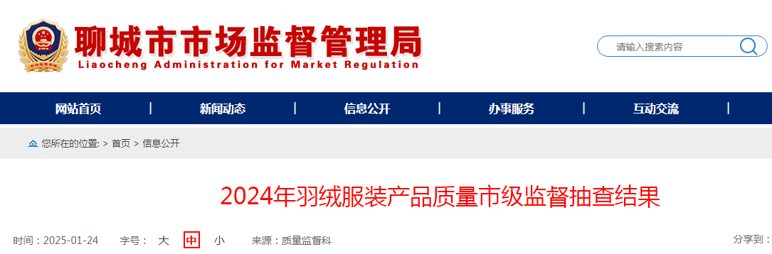 中國質(zhì)量新聞網(wǎng)訊 近日,山東省聊城市市場監(jiān)督管理局公布2024年羽絨服裝產(chǎn)品質(zhì)量市級監(jiān)督抽查結果。本次共抽查羽絨服裝產(chǎn)品5批次,經(jīng)檢驗,全部合格。