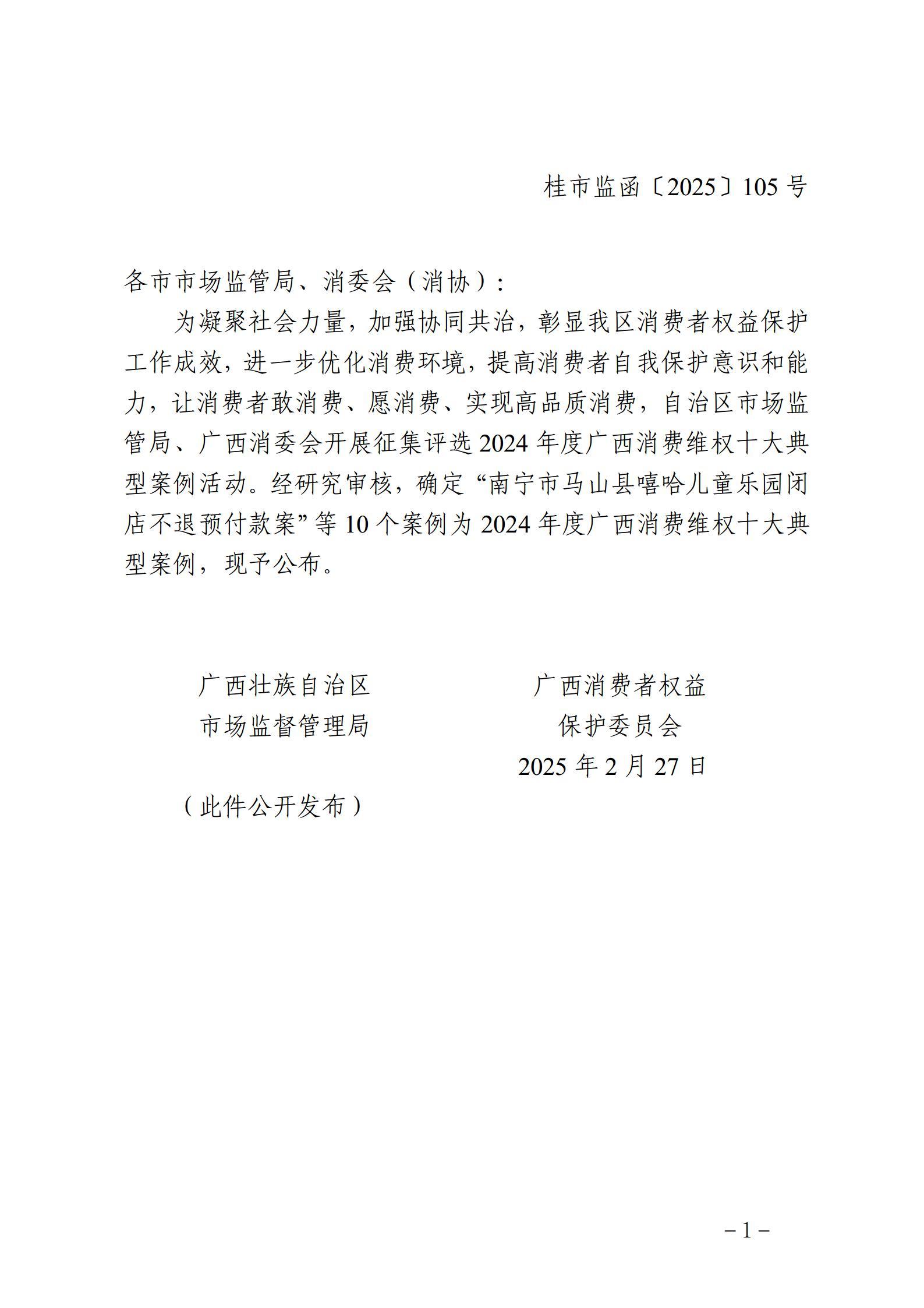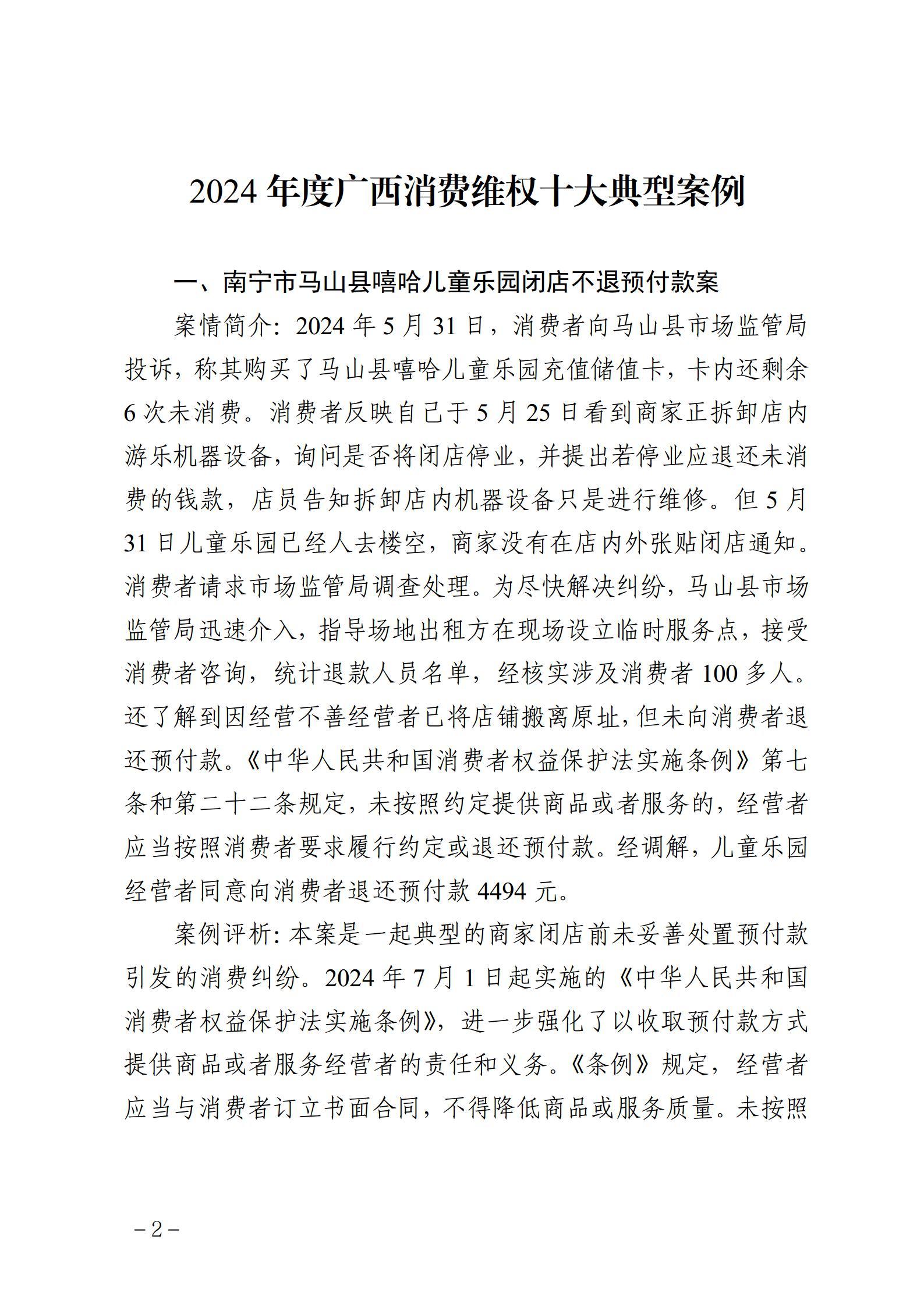 2024年度廣西消費(fèi)維權(quán)十大典型案例