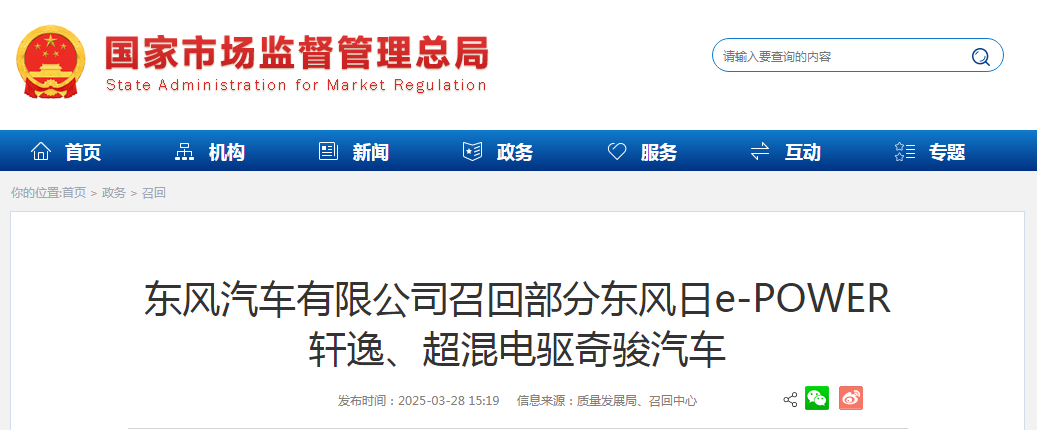 召回編號(hào)S2025M0049V:自2025年3月28日起,召回2021年5月14日至2023年8月25日生產(chǎn)的部分2021-2023年款e-POWER軒逸汽車(chē),共計(jì)34816輛;2021年9月25日至2023年10月20日生產(chǎn)的部分2021-2023年款超混電驅(qū)奇駿汽車(chē),共計(jì)11240輛。