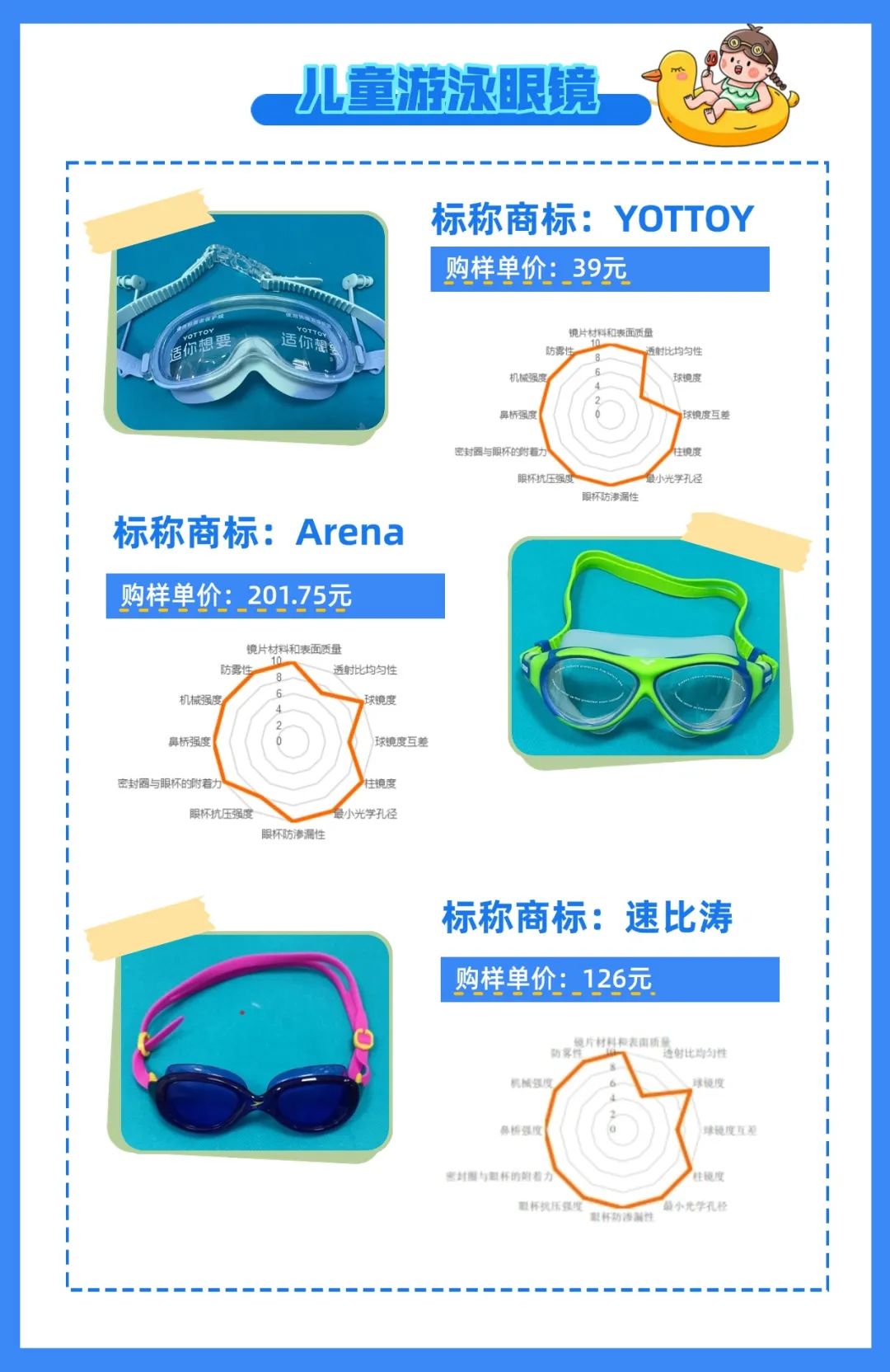 近期,杭州市消保委對市面熱銷的22款不同品牌的泳鏡進(jìn)行全方位實測,包含兒童和成人款式,相信能給你帶來選購幫助