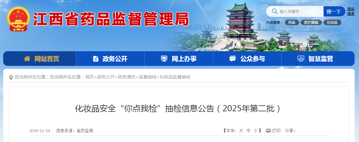 化妝品安全“你點我檢”抽檢信息公告(2025年第二批)