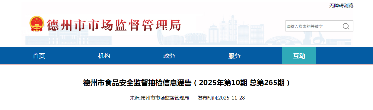 德州市食品安全監(jiān)督抽檢信息通告(2025年第10期 總第265期)