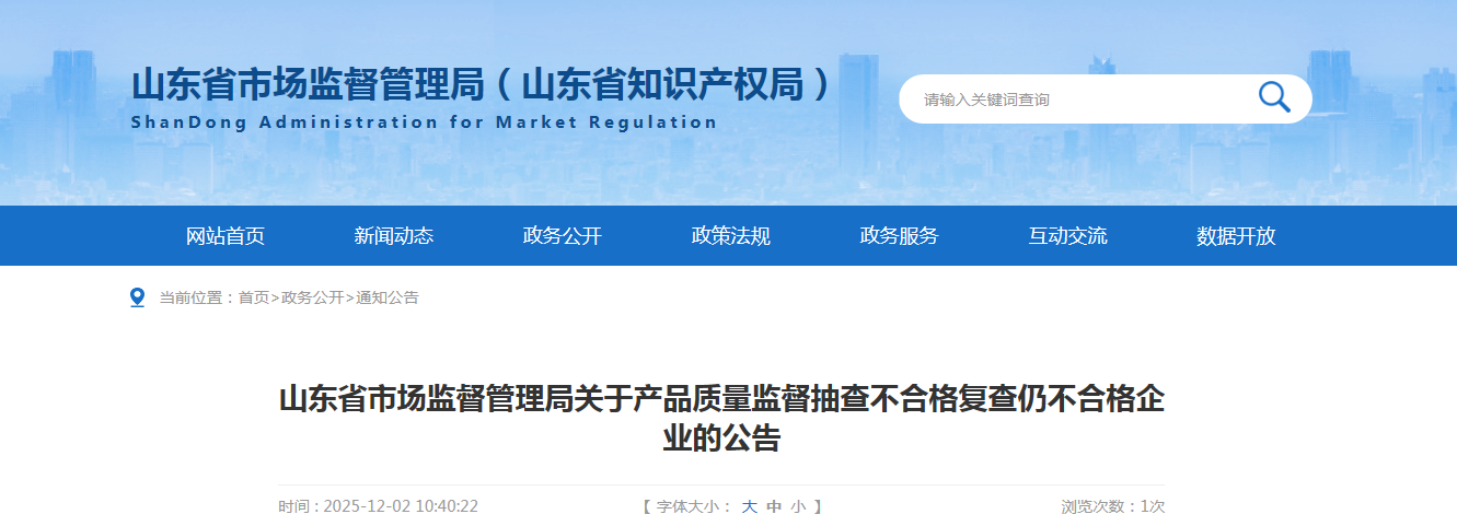 山東省市場(chǎng)監(jiān)督管理局關(guān)于產(chǎn)品質(zhì)量監(jiān)督抽查不合格復(fù)查仍不合格企業(yè)的公告