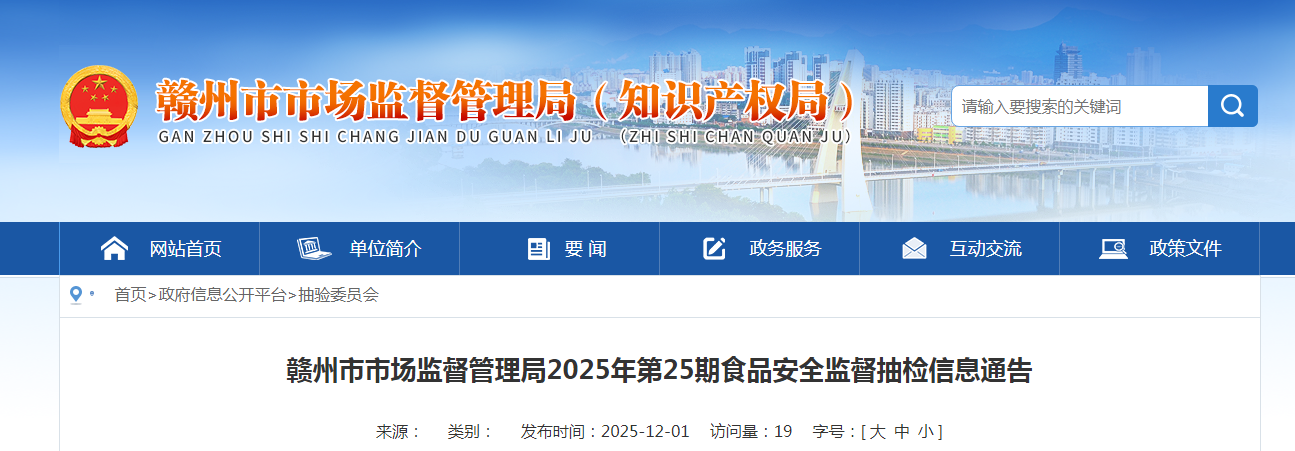 贛州市市場監(jiān)督管理局2025年第25期食品安全監(jiān)督抽檢信息通告