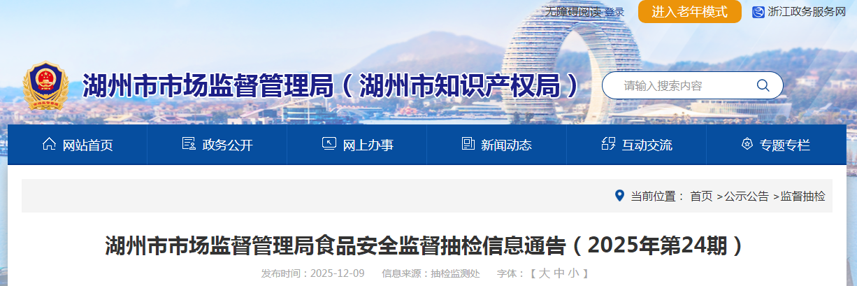 湖州市市場監(jiān)督管理局食品安全監(jiān)督抽檢信息通告(2025年第24期)