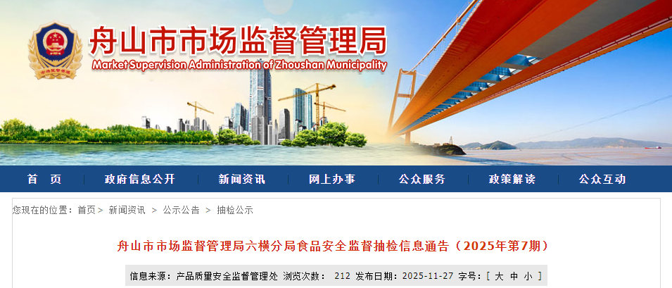 舟山市市場監(jiān)督管理局六橫分局食品安全監(jiān)督抽檢信息通告(2025年第7期)