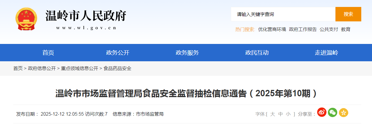 溫嶺市市場監(jiān)督管理局食品安全監(jiān)督抽檢信息通告(2025年第10期)