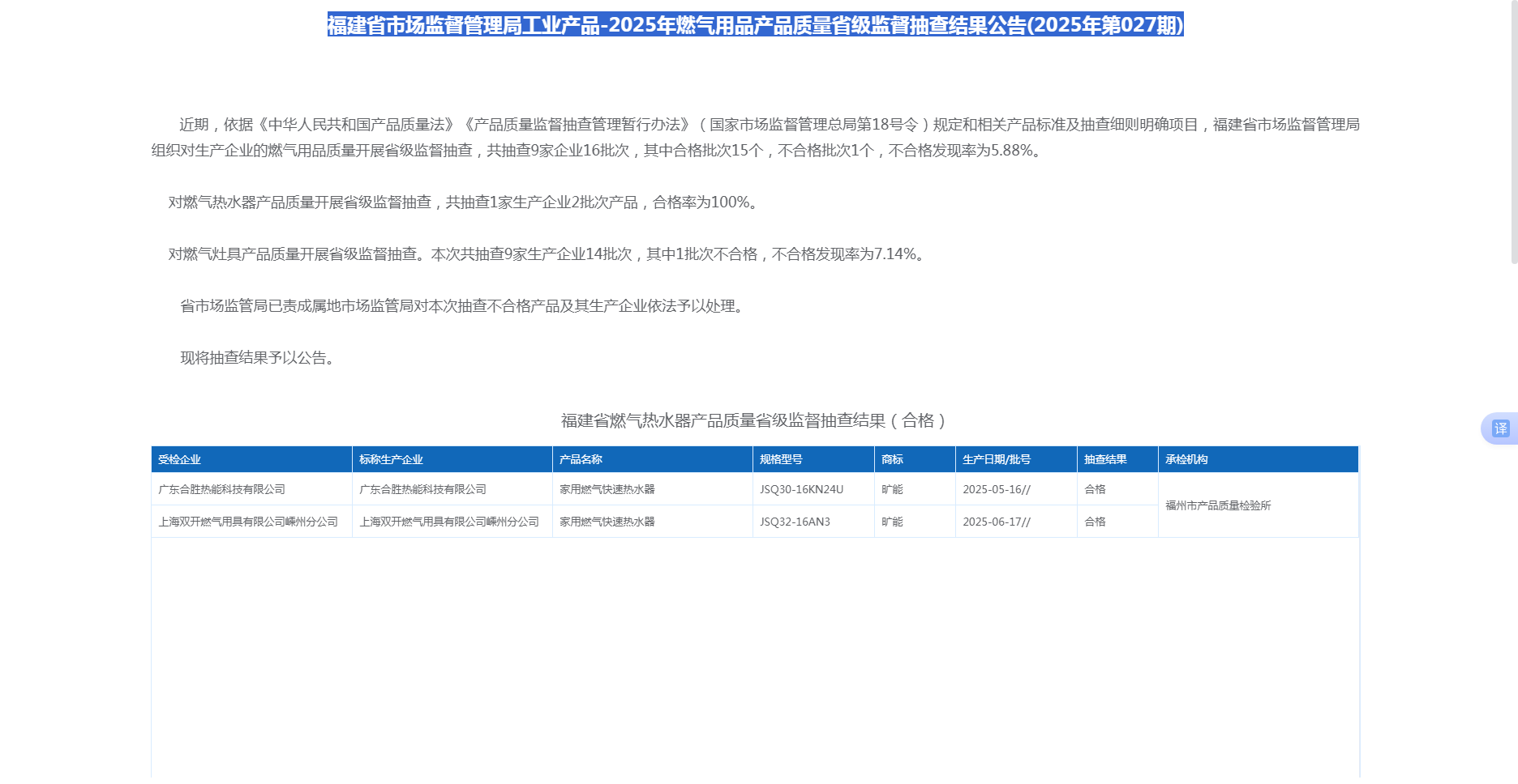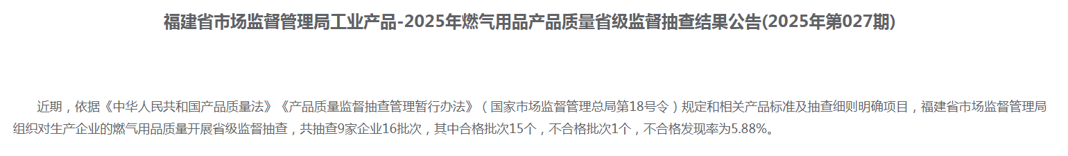 福建省市場監(jiān)督管理局工業(yè)產(chǎn)品-2025年燃?xì)庥闷樊a(chǎn)品質(zhì)量省級(jí)監(jiān)督抽查結(jié)果公告(2025年第027期).png