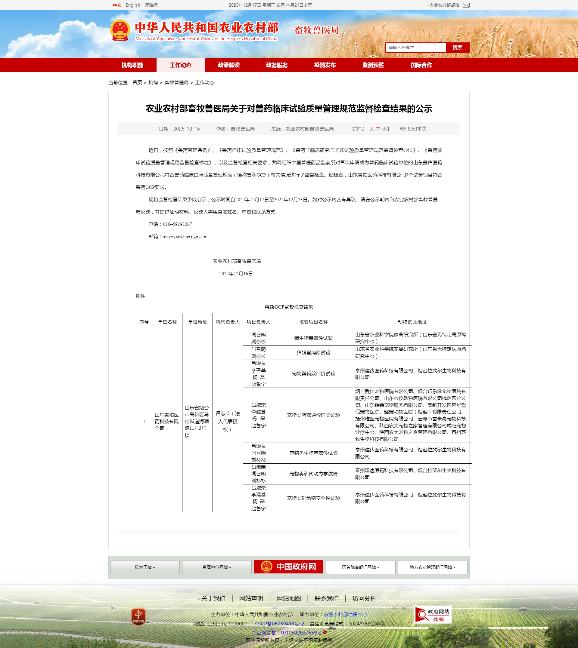現(xiàn)將監(jiān)督檢查結(jié)果予以公示,公示時間自2025年12月17日至2025年12月23日。如對公示內(nèi)容有異議,請在公示期內(nèi)向農(nóng)業(yè)農(nóng)村部畜牧獸醫(yī)局反映,并提供證明材料。反映人需用真實姓名、單位和聯(lián)系方式。
