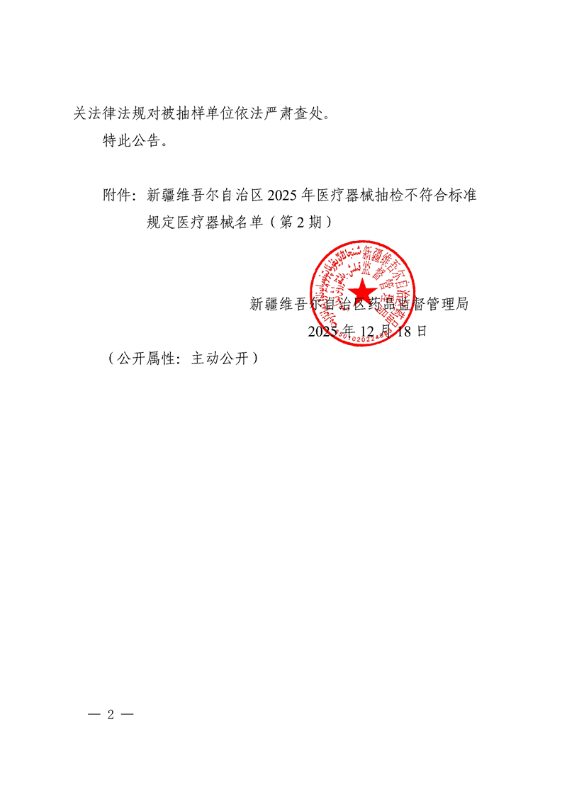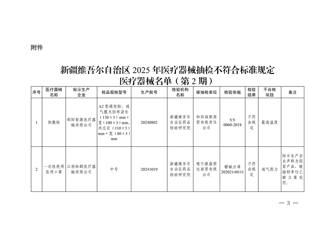 新疆醫(yī)療器械產(chǎn)品質(zhì)量公告(2025年第2期)