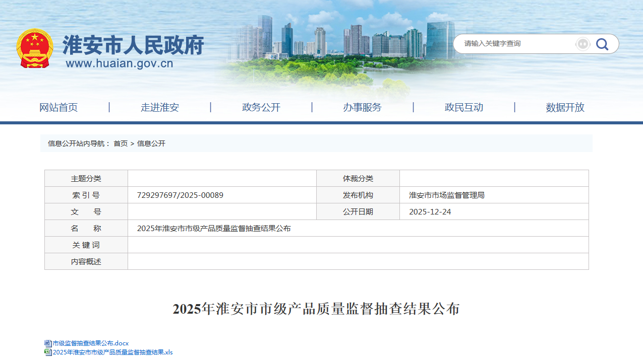 2025年淮安市市級產(chǎn)品質(zhì)量監(jiān)督抽查結(jié)果.xls