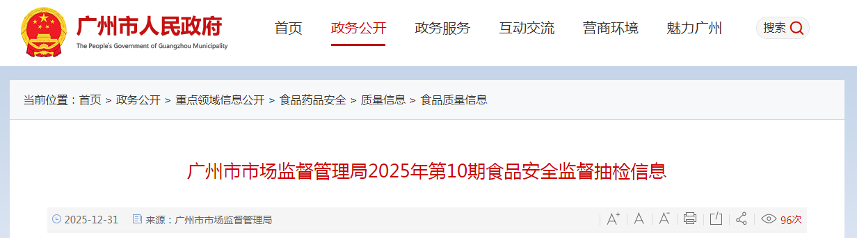 廣州市市場(chǎng)監(jiān)督管理局2025年第10期食品安全監(jiān)督抽檢信息