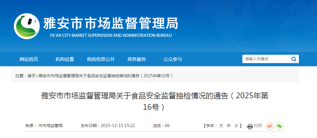 雅安市市場監(jiān)督管理局關(guān)于食品安全監(jiān)督抽檢情況的通告(2025年第16號)