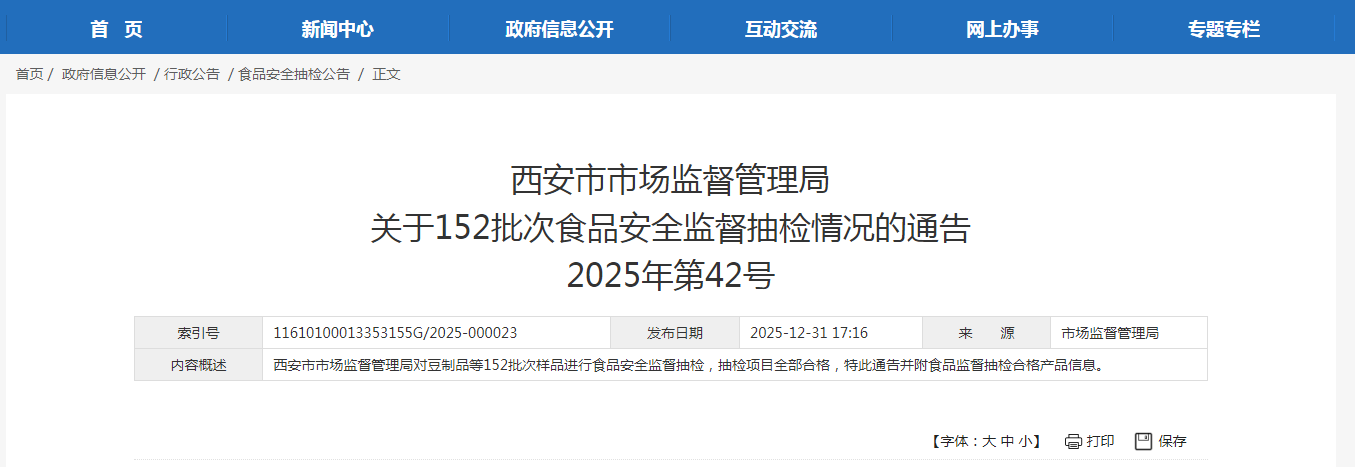 西安市市場監(jiān)督管理局關(guān)于152批次食品安全監(jiān)督抽檢情況的通告