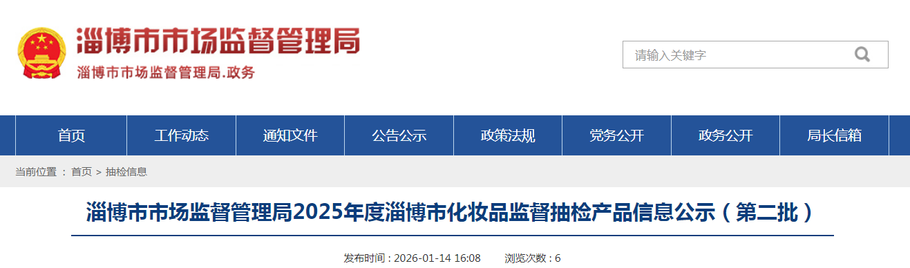 淄博市市場(chǎng)監(jiān)督管理局2025年度淄博市化妝品監(jiān)督抽檢產(chǎn)品信息公示(第二批)