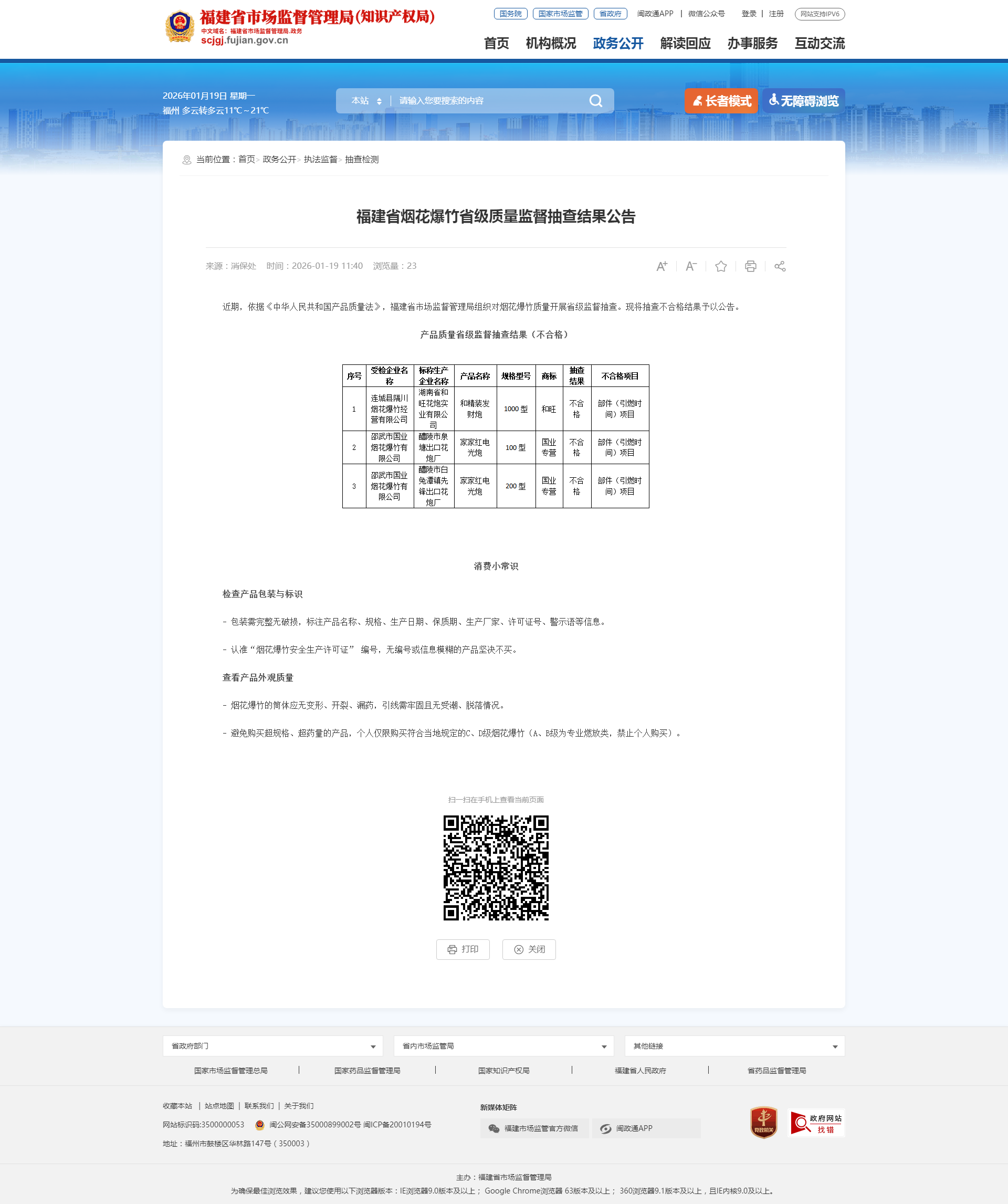 中國(guó)質(zhì)量新聞網(wǎng)訊 2026年1月19日,福建省煙花爆竹省級(jí)質(zhì)量監(jiān)督抽查結(jié)果公布。