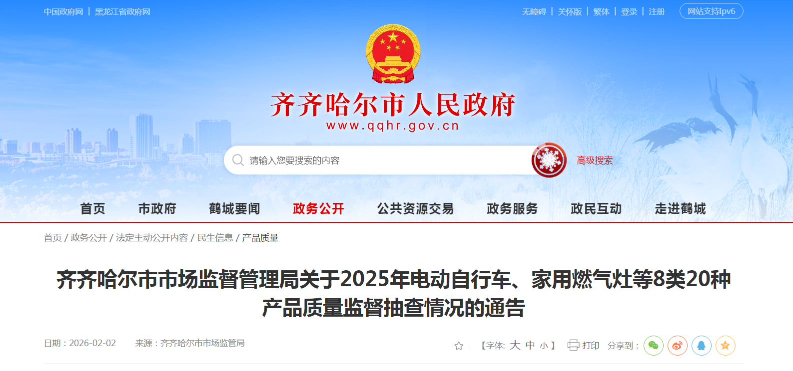 中國質(zhì)量新聞網(wǎng)訊 據(jù)黑龍江省齊齊哈爾市人民政府網(wǎng)站消息,按照《齊齊哈爾市2025年電動自行車、家用燃氣灶等8類20種產(chǎn)品質(zhì)量監(jiān)督抽查實施方案》,齊齊哈爾市市場監(jiān)管局組織開展了電動自行車、家用燃氣灶等8類20種產(chǎn)品質(zhì)量監(jiān)督抽查,現(xiàn)將抽查情況通告如下: