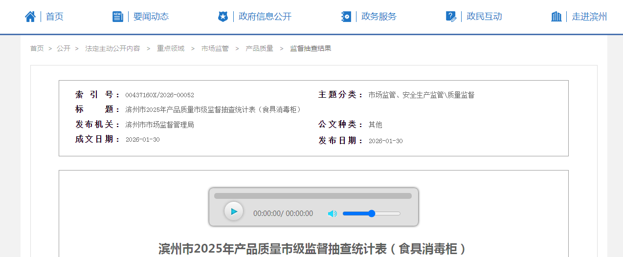 中國質(zhì)量新聞網(wǎng)訊 據(jù)山東省濱州市人民政府網(wǎng)站消息,近日,濱州市市場監(jiān)督管理局發(fā)布2025年產(chǎn)品質(zhì)量市級監(jiān)督抽查統(tǒng)計表(食具消毒柜)。