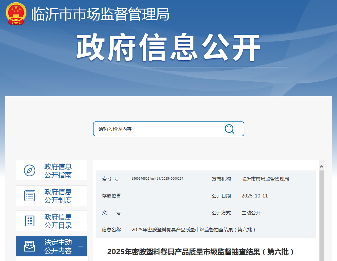 中國(guó)質(zhì)量新聞網(wǎng)訊 據(jù)山東省臨沂市市場(chǎng)監(jiān)督管理局網(wǎng)站消息,近日,臨沂市市場(chǎng)監(jiān)督管理局公布2025年密胺塑料餐具產(chǎn)品質(zhì)量市級(jí)監(jiān)督抽查結(jié)果(第六批)。本次共抽查銷售環(huán)節(jié)密胺塑料餐具產(chǎn)品10批次。