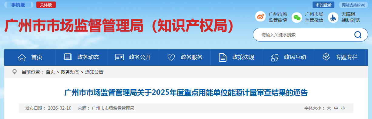 廣州市市場(chǎng)監(jiān)督管理局關(guān)于2025年度重點(diǎn)用能單位能源計(jì)量審查結(jié)果的通告