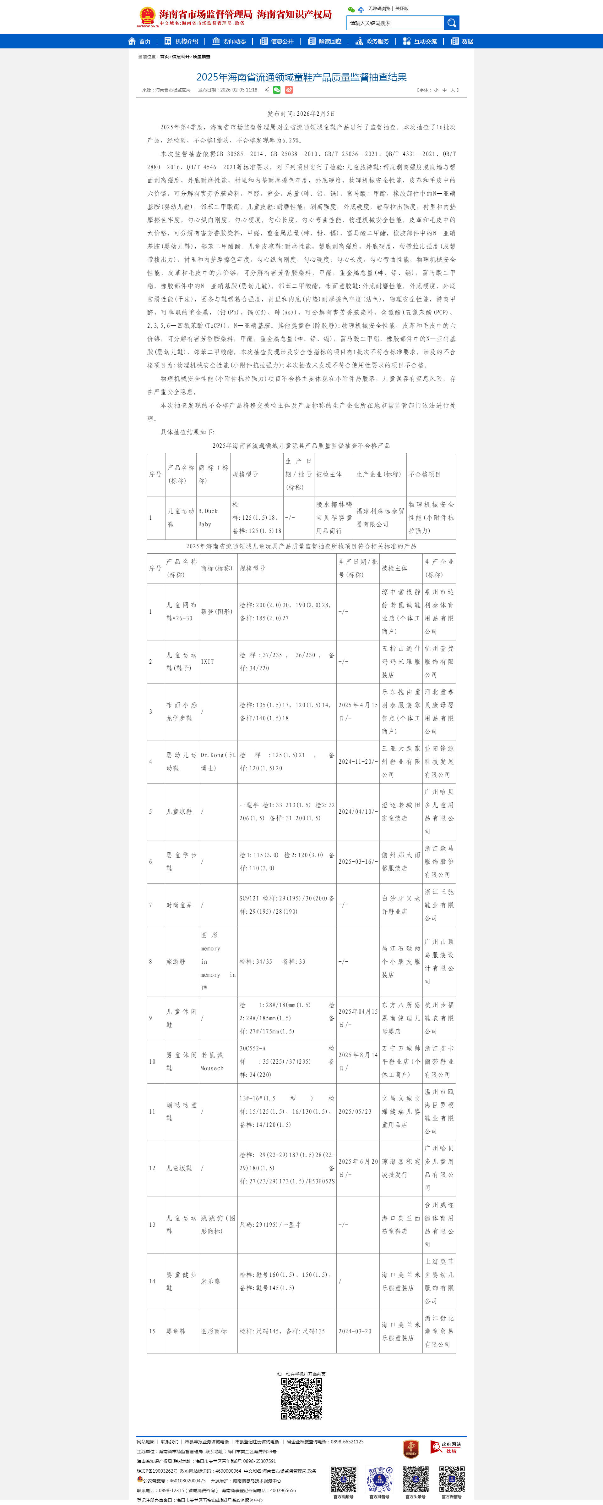 2025年海南省流通領(lǐng)域童鞋產(chǎn)品質(zhì)量監(jiān)督抽查結(jié)果 -- 質(zhì)量抽查 --海南省市場監(jiān)督管理局.png