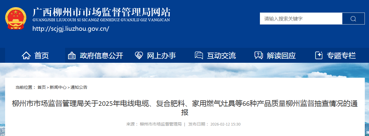中國(guó)質(zhì)量新聞網(wǎng)訊 據(jù)廣西柳州市市場(chǎng)監(jiān)督管理局網(wǎng)站消息,為加強(qiáng)生產(chǎn)及流通領(lǐng)域產(chǎn)品質(zhì)量監(jiān)督管理,維護(hù)廣大人民群眾合法權(quán)益,根據(jù)《中華人民共和國(guó)產(chǎn)品質(zhì)量法》《產(chǎn)品質(zhì)量監(jiān)督抽查管理暫行辦法》等法律法規(guī)有關(guān)規(guī)定,2025年該局對(duì)成電線電纜、復(fù)合肥料、家用燃?xì)庠罹叩?6種產(chǎn)品質(zhì)量開展了市本級(jí)監(jiān)督抽查,所有生產(chǎn)和銷售不合格產(chǎn)品行為已依法處置完畢?,F(xiàn)將具體情況通報(bào)如下: