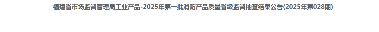 中國(guó)質(zhì)量新聞網(wǎng)訊 近日,福建省市場(chǎng)監(jiān)督管理局網(wǎng)站公布2025年第一批消防產(chǎn)品質(zhì)量省級(jí)監(jiān)督抽查結(jié)果(2025年第028期)。其中,對(duì)消防軟管卷盤產(chǎn)品質(zhì)量開(kāi)展省級(jí)監(jiān)督抽查,共抽查10家生產(chǎn)企業(yè)10批次產(chǎn)品,合格率為100%。