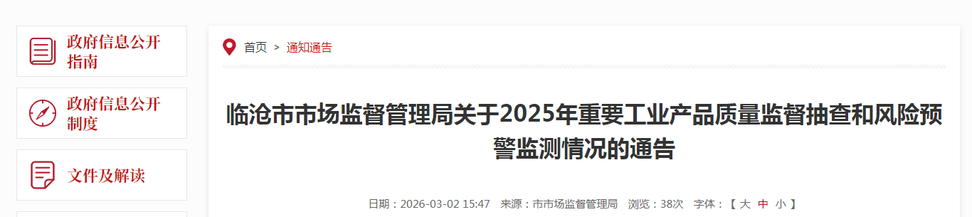 中國質量新聞網訊 據云南省臨滄市人民政府網站消息,為保障重要工業(yè)產品質量安全,維護消費者合法權益,根據相關規(guī)定,2025年,臨滄市市場監(jiān)督管理局組織對水泥、建筑用磚、鋼筋、肥料、電線電纜、成品油等17大類產品開展了市級監(jiān)督抽查,并對紙碗產品開展了風險預警監(jiān)測。本次共抽檢產品281批次,相關監(jiān)督抽查及風險監(jiān)測結果信息詳見下表。
