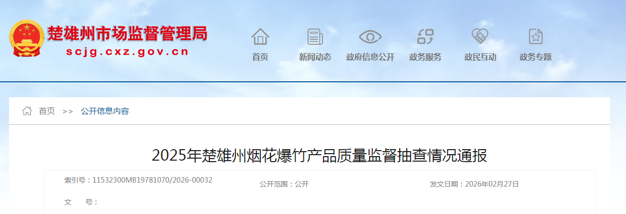 2025年楚雄州煙花爆竹產(chǎn)品質(zhì)量監(jiān)督抽查情況通報.png