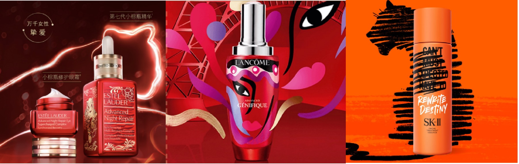 (雅詩蘭黛虎年限定小棕瓶套裝、歐萊雅虎頭版細管口紅、SK-II虎年限定版神仙水)