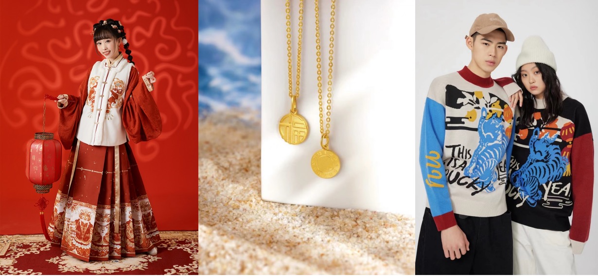 十三余、御茶家等Z世代鐘愛的品牌推出了漢服、國風系列特色服飾,周生生、周大福、京工美作帶來轉(zhuǎn)運珠、“萬字福牌”吊墜、黃金古法手鐲等寓意吉祥的黃金飾品。不止如此,VERO MODA、卡賓、巴拉巴拉等品牌也將上新“中國風”元素新裝,為本屆年貨節(jié)拉足了滿滿的期待。