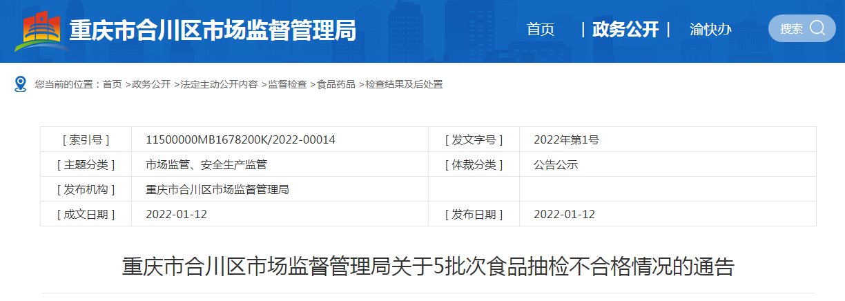 中國(guó)質(zhì)量新聞網(wǎng)訊 2022年1月12日,重慶市合川區(qū)市場(chǎng)監(jiān)督管理局網(wǎng)站發(fā)布的食品抽檢信息顯示,標(biāo)識(shí)漯河市冬有食品有限公司生產(chǎn)的1批次蒸蛋糕玉米味(蒸蛋糕類)抽檢不合格。