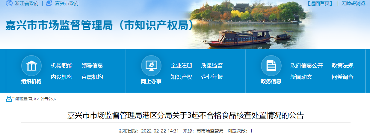 嘉興市市場監(jiān)督管理局港區(qū)分局關(guān)于3起不合格食品核查處置情況的公告