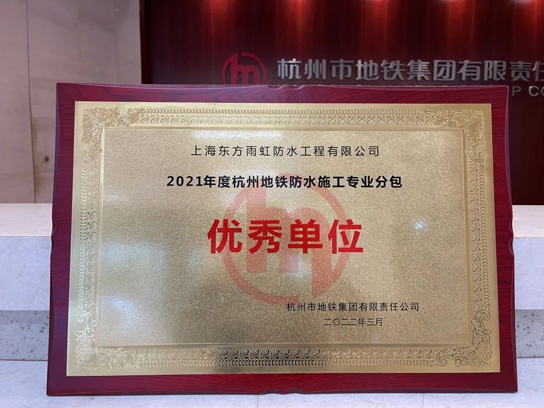 近日,杭州市地鐵集團有限公司(以下簡稱杭州地鐵)公布“2021年度杭州地鐵防水施工專業(yè)分包 優(yōu)秀單位”,東方雨虹憑借品質優(yōu)勢及專業(yè)服務獲此殊榮。多年來,東方雨虹先后參與杭州軌道交通不同制式結構形式的項目線路多達15條,其中地鐵項目10條,市域鐵路項目5條,以品質為基,為杭州軌道交通項目建設的防水質量保駕護航。