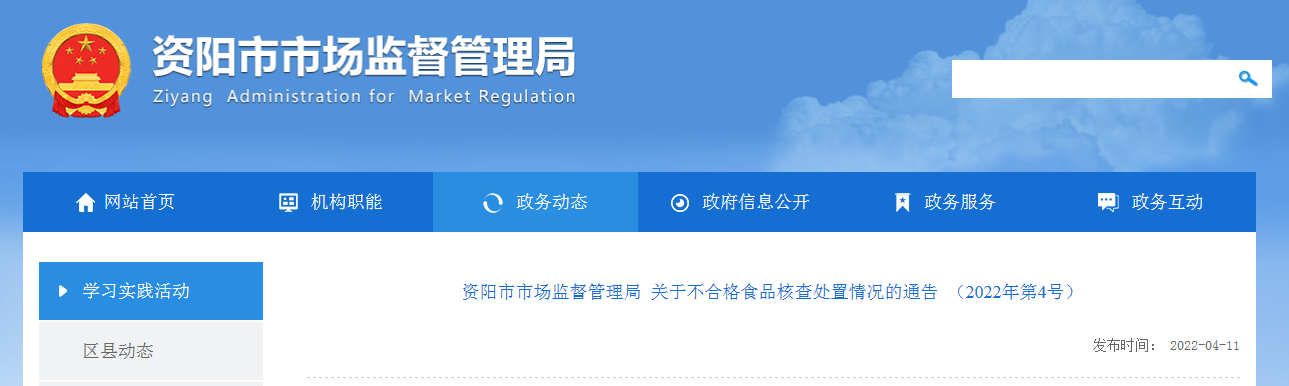 中國質(zhì)量新聞網(wǎng)訊 近日,四川省資陽市市場監(jiān)督管理局發(fā)布關(guān)于不合格食品核查處置情況的通告(2022年第4號),涉及資陽市高新區(qū)天香冷凍畜禽產(chǎn)品經(jīng)營部銷售的“干筍子”。